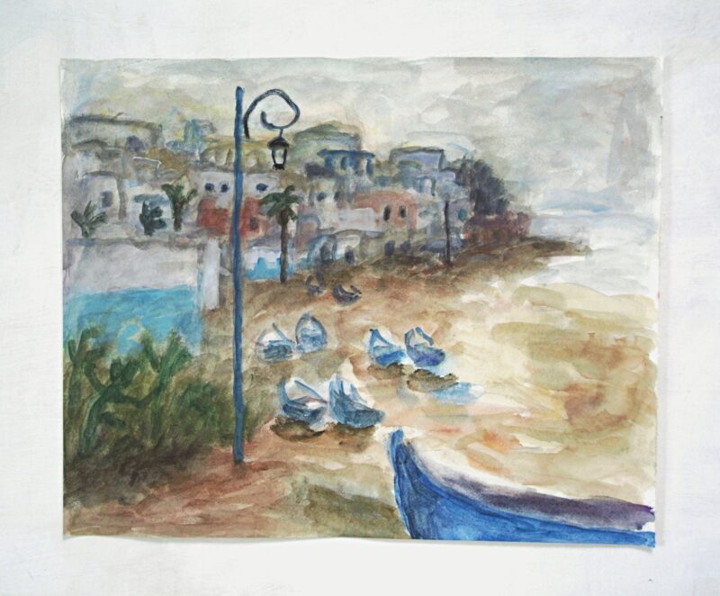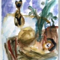 画家・松本輝重のサイト/ etojiyu.com 2022.09.102026.01.22 今週の一枚(1月18日)水彩画。いつも悩むのはモチーフとのチーフの間の空間に置く色。その色は2つのモチーフから必然性をもって生まれてこないと、結局モチーフは空間と切り離されて存在していることになり、絵が色によって一枚岩にならない。とは言え、ここにこそ絵の創造的自由という醍醐味があるので、悩みというのは当たらないだろうな・・・。